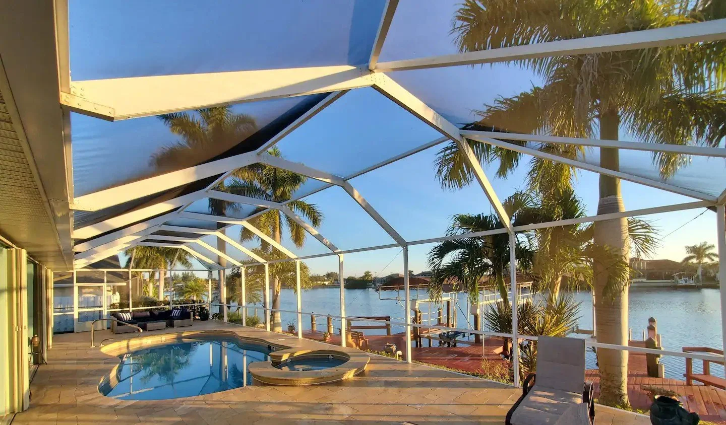 Villa Lago Vista is a 4-bedroom, 2-bath waterfront retreat in Cape Coral, offering breathtaking views of Ceitus Lake. Enjoy a private heated pool & spa, a fenced yard perfect for dogs, home office, and quick & easy Gulf access by boat via the Matlacha Pass.